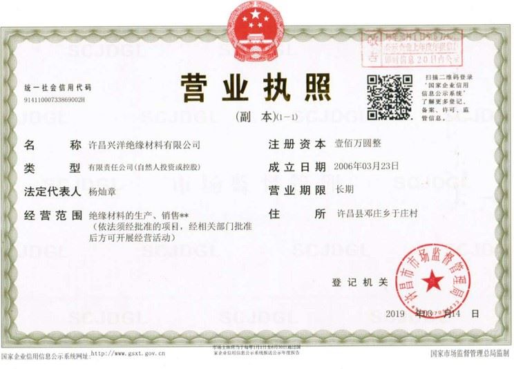 許昌興洋絕緣材料有限公司營(yíng)業(yè)執(zhí)照